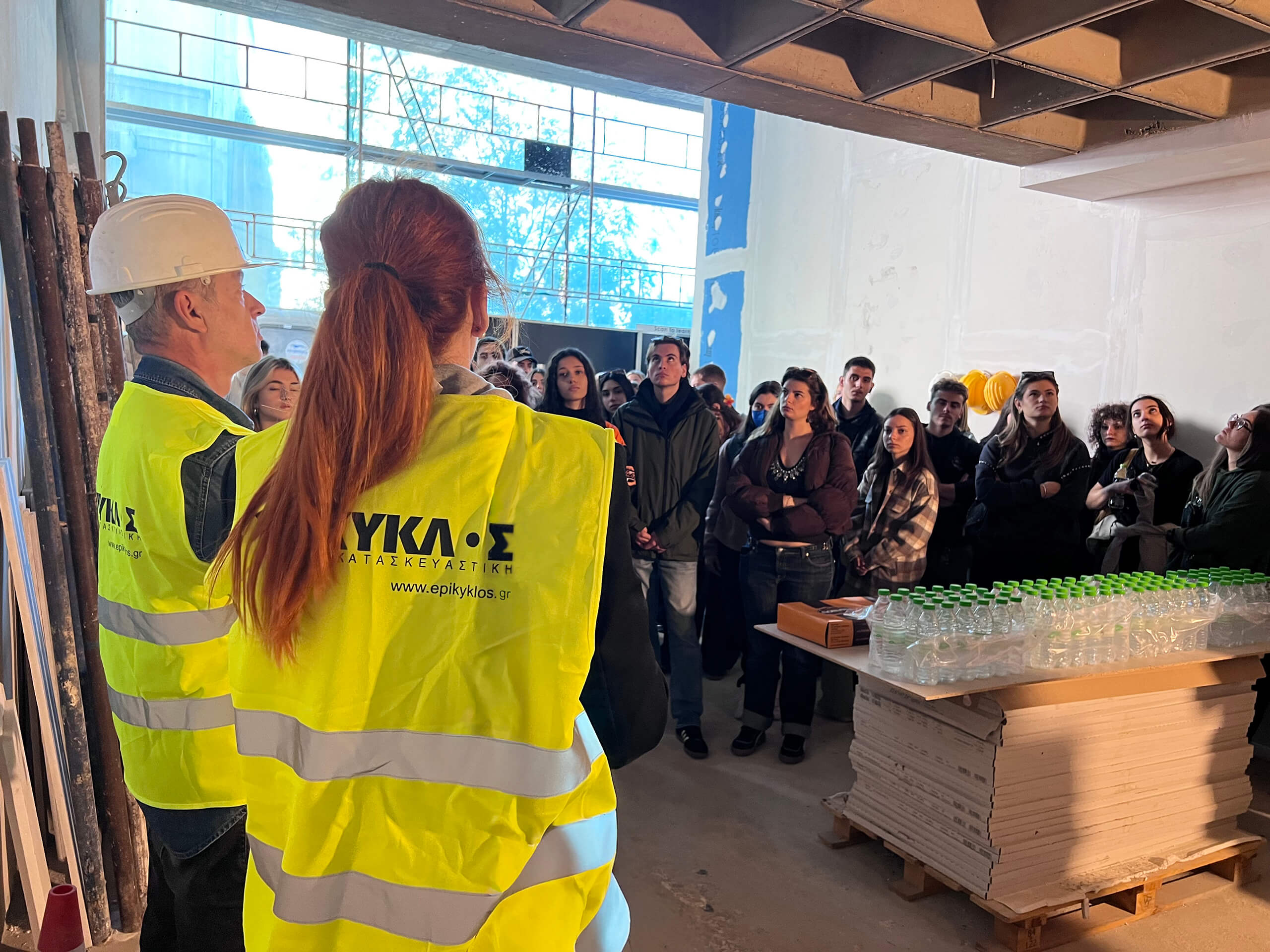Η εκπαιδευτική επίσκεψη των φοιτητών πραγματοποιήθηκε σε δύο ημέρες, ως παράλληλη δράση των μαθημάτων Αρχιτεκτονικής Τεχνολογίας. Την Τρίτη, 11 Νοεμβρίου, υποδεχτήκαμε τους αρχιτέκτονες του 2ου και 3ου έτους, ενώ την Τετάρτη, 12 Νοεμβρίου, στο εργοτάξιο ήρθαν τα παιδιά του 1ου έτους.