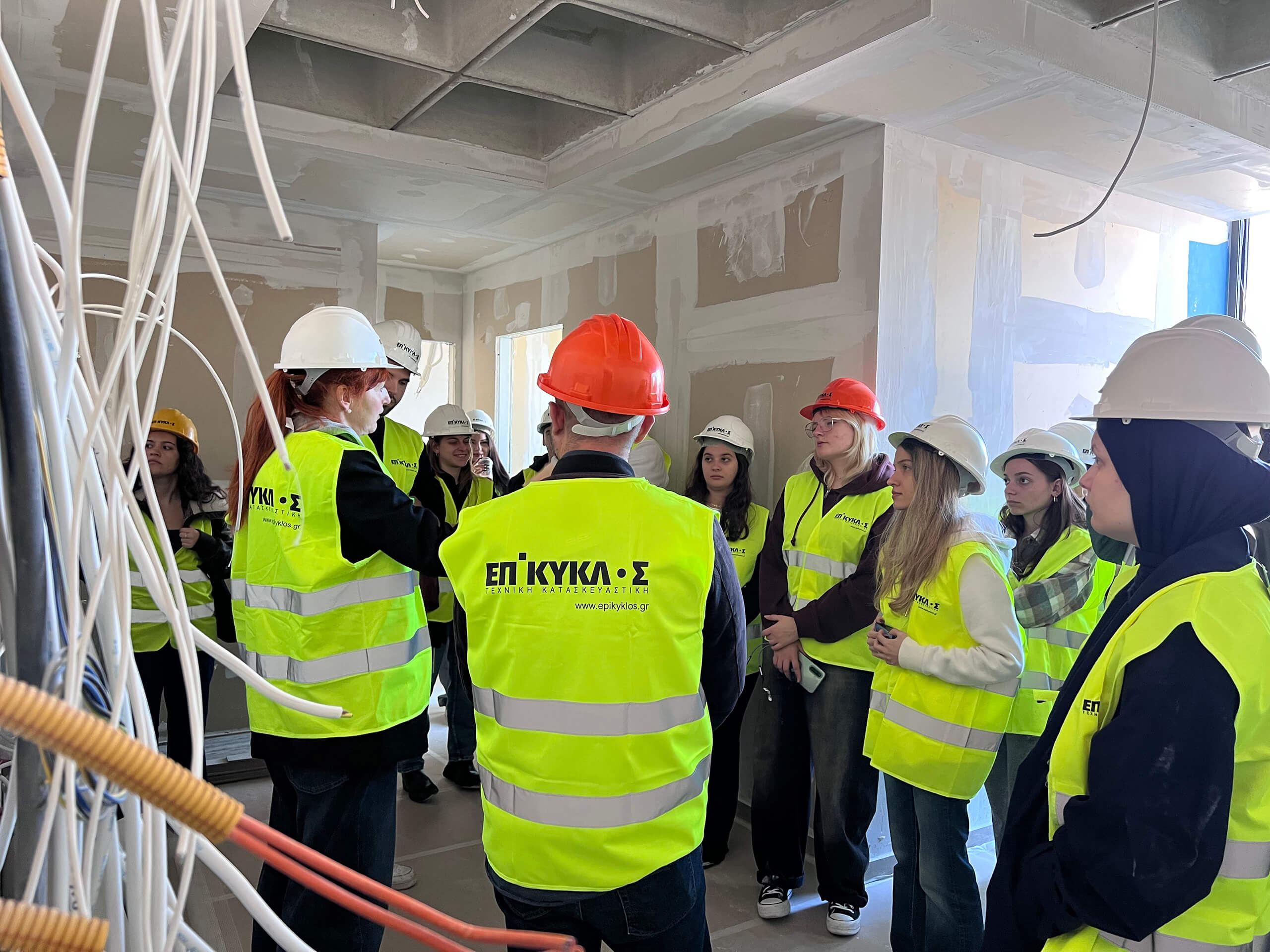 Παράλληλα, ενημερώθηκαν για βασικά θέματα λειτουργίας ενός εργοταξίου, όπως είναι η ασφάλεια και η υγιεινή στον χώρο εργασίας. Κατά τη διάρκεια των επισκέψεων, όλοι οι παρευρισκόμενοι τήρησαν αυστηρά τα προβλεπόμενα μέτρα ασφαλείας (κράνη, γιλέκα κλπ.).