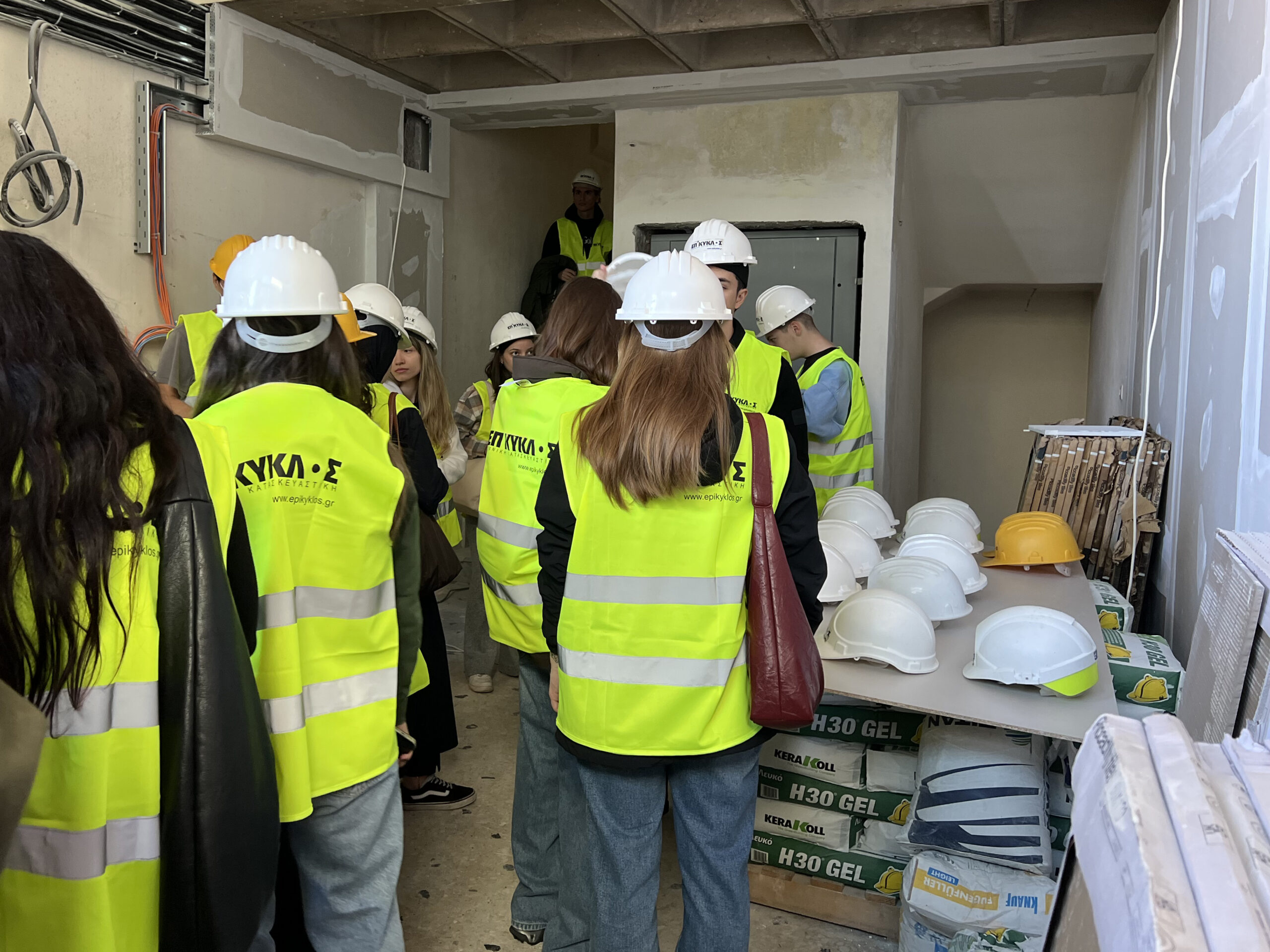 Στις δύο ομάδες σπουδαστών, μίλησαν η αρχιτέκτονας μηχανικός του έργου, Έλενα Κουτσοπούλου, και ο πολιτικός μηχανικός και υπεύθυνος εργοταξίων της ΕΠΙΚΥΚΛΟΣ, Φώτης Κακαρούμπας.